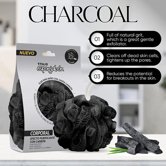 T.Taio Esponjabon Charcoal Shower Bath Puff Soap Sponge